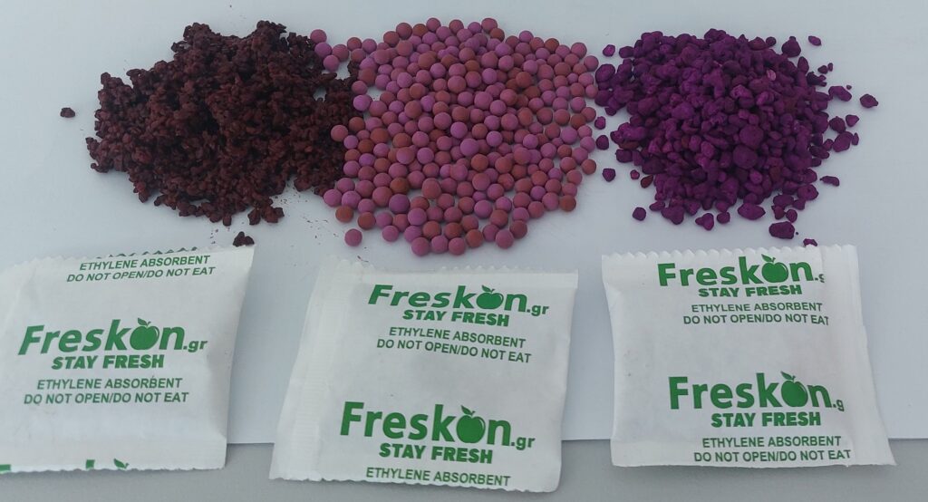Ακόμη και μια εξαιρετικά μικρή ποσότητα αιθυλενίου μπορεί να προκαλέσει μη αναστρέψιμη βλάβη! Συχνά δεν είναι άμεσα εμφανής, το αιθυλένιο θα έχει επίδραση, ακόμη και αν ο χρόνος έκθεσης είναι σύντομος. Τα προϊόντα «Air Freskon Ethylene Absorber» οξειδώνουν το αιθυλένιου, μετατρέποντάς  το σε ακίνδυνο CO2 (διοξείδιο του άνθρακα) και Η2Ο (νερό). Όταν είναι καινούριο το προϊόν τα απορροφητικά σφαιρίδια του αιθυλενίου έχουν ένα ανοιχτό μωβ χρώμα. Μετά την έκθεση στην ατμόσφαιρα, και όταν το αιθυλένιο έχει οξειδωθεί, τα απορροφητικά σφαιρίδια μετατρέπονται σε σκούρο καφέ χρώμα.