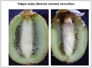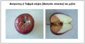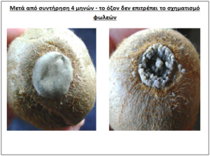 Αριστερά με την μέθοδο της καταλυτική οξείδωσης παρατηρείται κανονική ανάπτυξη-σποριοποίηση 1,25 x 105 κονίδια/καρπό, ενώ δεξιά και με χρήση όζοντος η δημιουργία σκληρωτίων πατεμποδίζει την σποροποίηση.