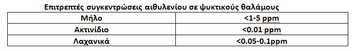 Η αφαίρεση του αιθυλενίου από τους ψυκτικούς θαλάμους γίνεται με τις παρακάτω μεθόδους: